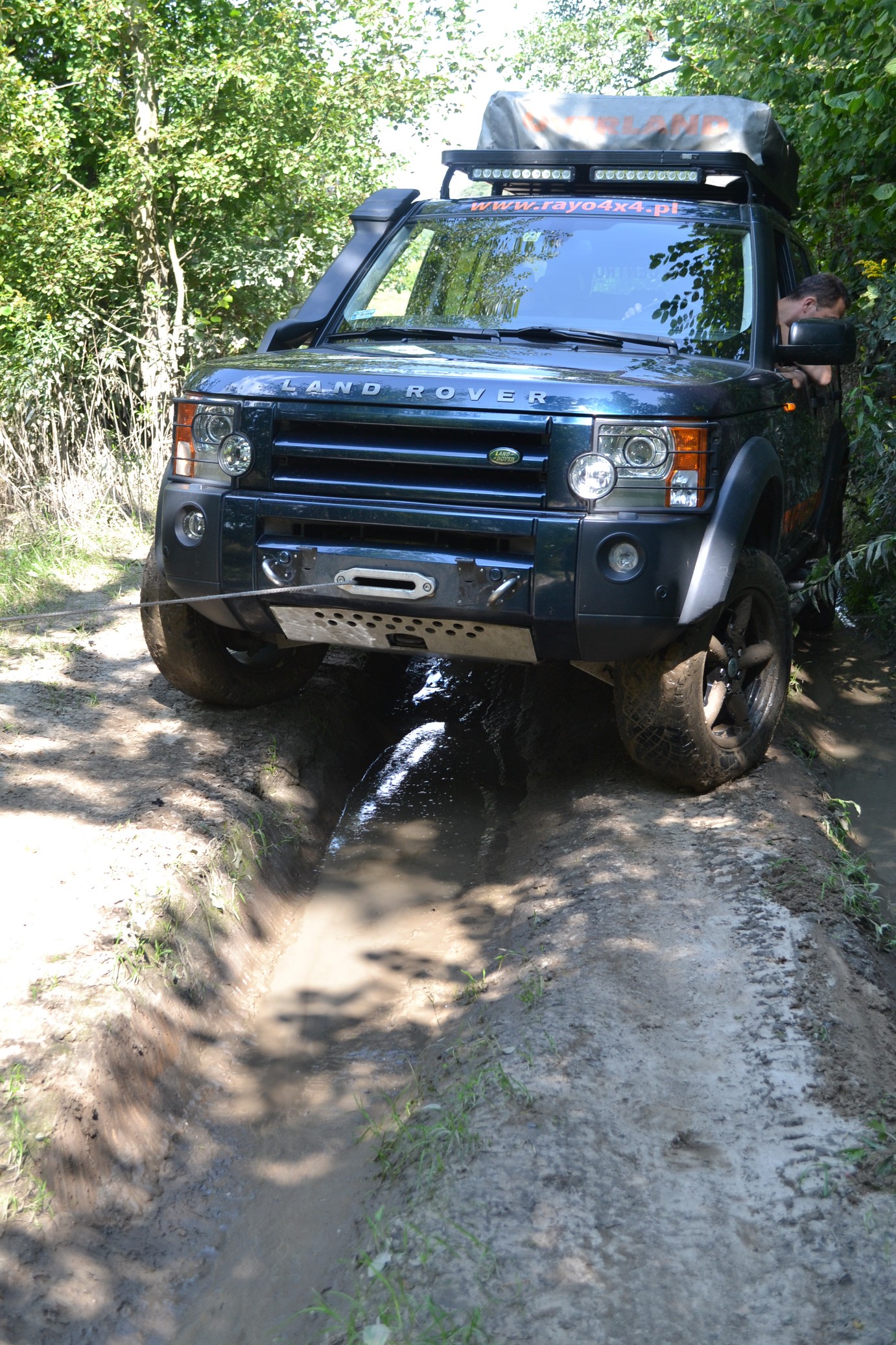 Przydatna, a momentami nawet niezbędna może okazać się wyciągarka. Prezentowane Discovery wyposażono w wyciągarkę TJM. Zamontowana została na stalowej płycie mocowanej bezpośrednio do ramy. Tym co charakteryzuje płytę pod wyciągarkę firmy RCX są wysoko umieszczone uszy do holowania, co okazuje się szczególnie pomocne w momencie gdy ugrzęźniemy w głębokim błocie. Dodatkowo zabezpiecza nam ona zespół wyciągarki przed uszkodzeniami. Wszystko ukryto pod fabrycznym zderzakiem, dzięki czemu wygląd zewnętrzny przedniej części auta pozostał prawie niezmieniony. Lina zastosowana w wyciągarce to lina syntetyczna firmy Marlow, na którą zdecydowano się ze względu niższej masy, a także braku problemów ze skręcaniem się co zdecydowanie ułatwia pracę użytkownikowi w porównaniu do pracy z liną stalową.