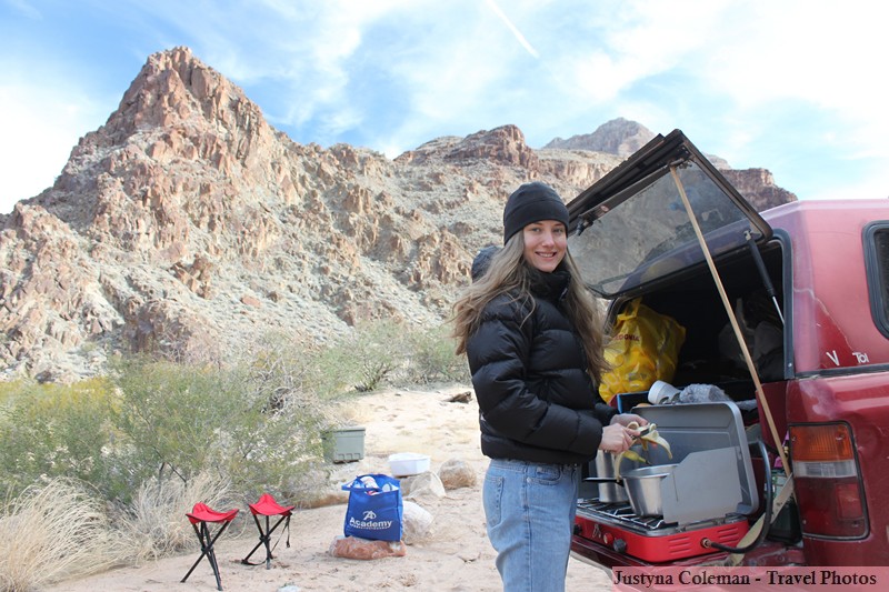 Najbliższa okazja na taki wyjazd powstała pod koniec grudnia 2013. Naszym środkiem transportu, a równocześnie miejscem do spania, była Toyota Pick-up 4×4 z tak zwanym „topperem”, czyli czymś w rodzaju zadaszenia na tyle furgonetki. Z płyty pilśniowej i zwykłych, piankowych karimat jako izolacji, Steve zbudował pudło, które idealnie pasowało na tył pick-upa. W środku położyliśmy nasz materac do spania, a po bokach tak utworzonego łóżka, ale również na nim, znajdował się nasz pozostały dobytek- jedzenie, ubrania, mini kuchenka gazowa, łopata i łańcuchy na opony (w razie gdybyśmy utknęli w śniegu w Kolorado lub Utah), a przede wszystkim zapas wody w czterolitrowych baniakach. Jedynym minusem takiej konfiguracji była konieczność przenoszenia sporej części rzeczy do przedniej kabiny furgonetki…